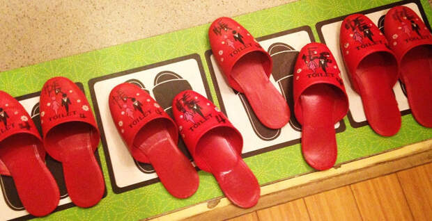 В отелях и домах японцы используют отдельные пластиковые или резиновые тапочки для туалета и ванной. Обычно они стоят при входе в санузел. Когда вы выходите, шлепанцы нужно снять и оставить на том же месте. У этой странной традиции две цели: во-первых, японцы считают, что это более гигиенично, а во-вторых, сразу ясно, что туалет занят.